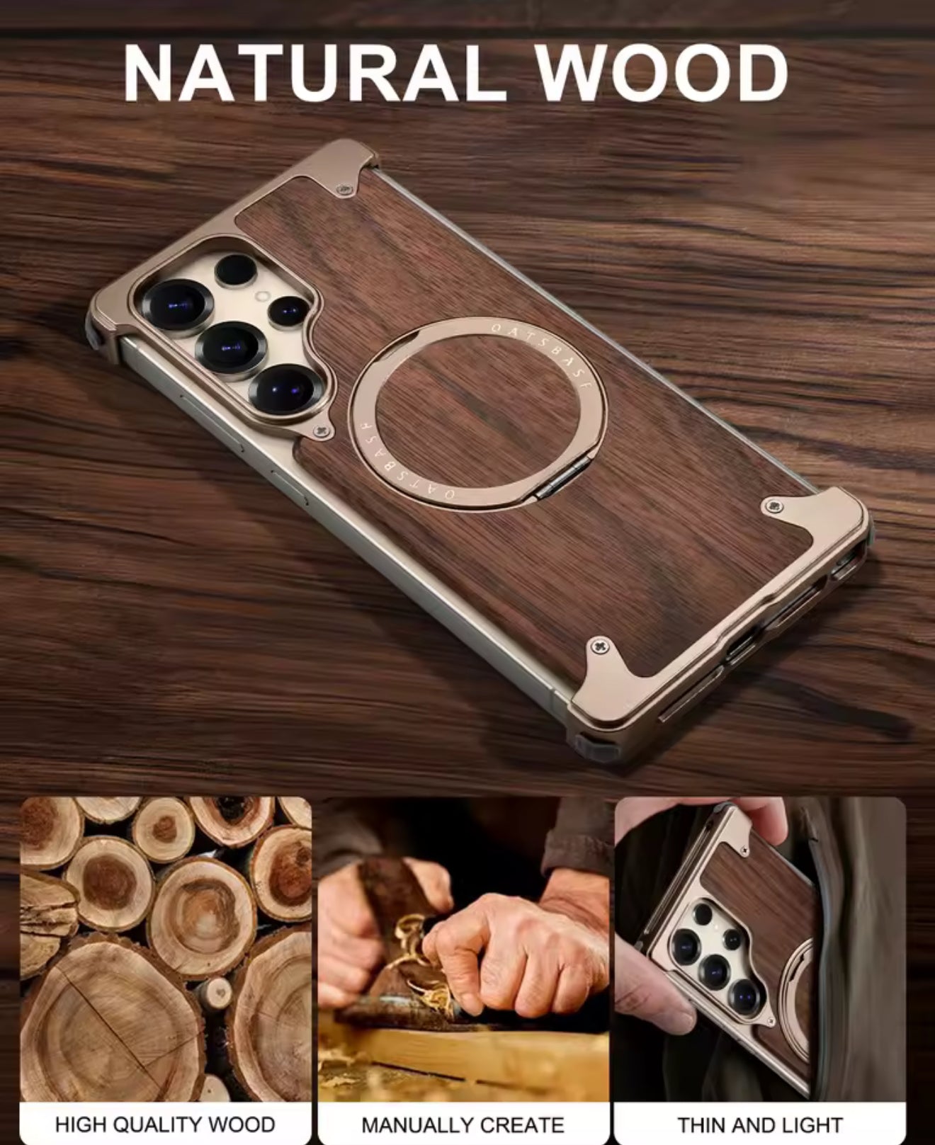 Coque Bois Naturel & Aluminium – MagSafe 360° Ultra Premium (Samsung S24 / S25 Ultra)